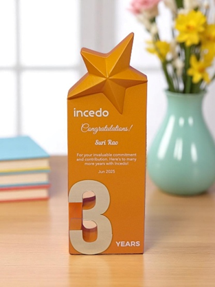 That shift is visible in Incedo’s approach to long-term employee trophies.